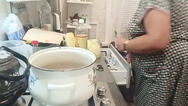 Добрый день. Зять с дочерью занимаются стройкой, а я готовлю обед. Получился капустный день. Вадик не ест крахмальные продукты. Вот я и приготовила. А лече на зиму. Очень вкусно.