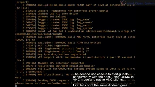 This demo is a first attempt of showcasing full virtualization on Android and ARM platforms, by utilizing Cortex-A15 and KVM on ARM. The selected platform for the demonstration, is ARM's Versatile Express with a Cortex-A15 dual core processor running at 1 GHz with 2 GB of RAM. After the initial boot, the host is suspended and an identical Android guest is started. On both cases a benchmark is run, to exhibit near native performance of the guest on CPU workloads (less than 3% performance loss). The guest and host can be suspended/resumed at will. The second part of the demo shows a more user friendly approach, by utilizing already available Android applications. Two guests are started (Android Jelly Bean and Ubuntu 12.04 LTS), and can be used concurrently with the Android Host seamlessly. VirtualOpenSystems provides virtualization test and porting services for ARM-based multicore systems. Further information can be discovered at VirtualOpenSystems. Contact us at: contact@virtualopensystems.com http://www.virtualopensystems.com/