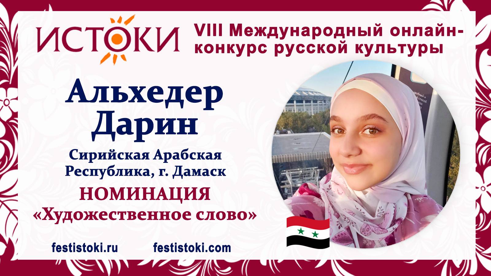 Альхедер Дарин, 16 лет. Сирия, г. Дамаск. "К не нашим"