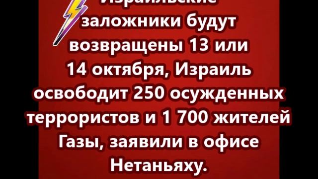 Израильские заложники будут возвращены 13 или 14 октября