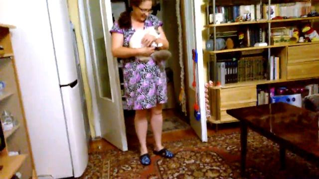 Никто кошку не дрессировал, просто ей это нравится!