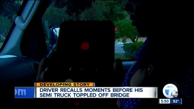 The driver of a semi that crashed through a wall on I-75 and fell off a bridge recalled the moments before the crash. ◂ WXYZ 7 Action News is metro Detroit's leading source for breaking news, weather warnings, award-winning investigative reports, sports and entertainment. WXYZ 7 Action News is Detroit's breaking news and weather leader. Channel 7 - on-air, online at WXYZ.com and always Taking Action for You. For more download the WXYZ mobile app: iPhone: http://bit.ly/iOS-wxyz Android: http://bit.ly/wxyzplay