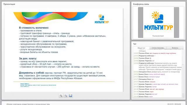 Вебинар |МУЛЬТИТУР|Абхазия|Новогодние| рождественские и экскурсионные туры 🔔Подписывайтесь на наш канал и следите за обновлениями в соц.сетях, будем выкладывать много интересных видео о местах, куда можно поехать: ►Телеграм: https://t.me/multitour_for_agent ►ВК: https://vk.com/multitur ►Дзен: https://dzen.ru/id/5d766a6baad43600ad.. ►OK: https://ok.ru/profile/572506334933 ----------------- Задавайте свои вопросы в комментариях! ----------------- Подробнее об условиях и ценах можно узнать на нашем сайте https://www.multitour.ru/ или по телефону ☎ +7 (499) 681-61-08