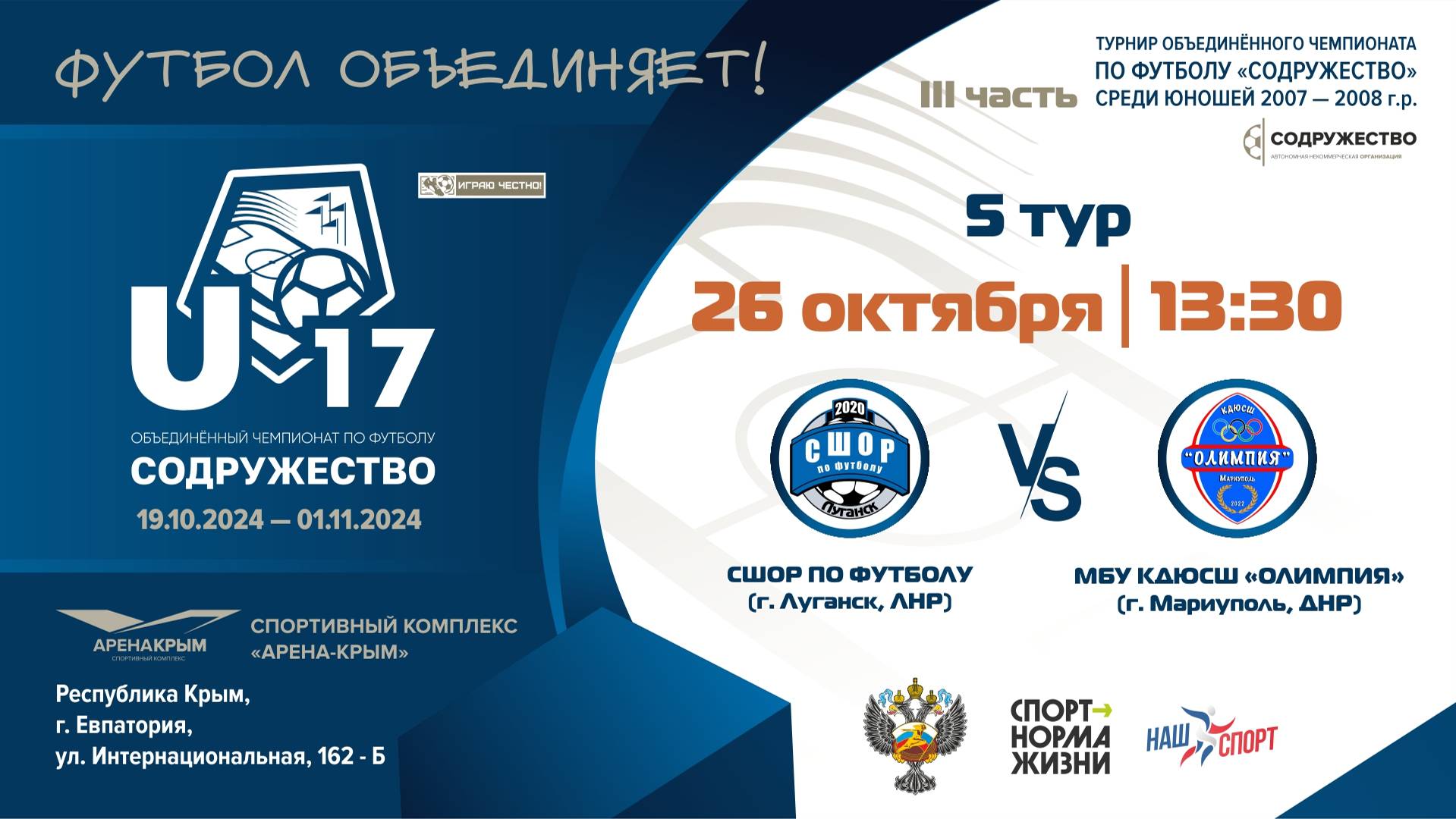 5 ТУР | U-17 | ГБУ ДО ЛНР «СШОР по футболу» (г. Луганск, ЛНР) vs МБУ КДЮСШ "Олимпия" (г. Мариуполь,