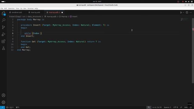 Ada для разработчиков игр - массивы Содержание 00:07 Введение и цель видео • Видео является продолжением предыдущего видео о связанных списках. • Цель - создать структуру данных в виде массива, который автоматически увеличивается в размере при необходимости. • Интерфейс массива должен быть простым и позволять добавлять элементы в определенную позицию. 01:03 Изменения в коде и создание общей спецификации • Внесены изменения в код для создания общей спецификации. • Это помогает сделать код более модульным и удобным для других пакетов. • Основная процедура теперь содержит только текст, а графические элементы вынесены в отдельный пакет. 02:56 Создание пакета и типов данных • Пакет назван "mare" вместо "массив", чтобы избежать конфликтов с типом данных. • Определены типы данных для работы с массивом: неограниченный массив с фиксированным размером и тип для доступа к массиву. • Массив представлен как запись с двумя составляющими: набор элементов и вместимость. 04:38 Интерфейс и функции массива • Интерфейс массива включает функции вставки и получения элементов. • Вставка требует целевой массив, индекс и новый элемент. • Функция get возвращает элемент из целевой позиции. 06:31 Реализация функций вставки и изменения размера • Вставка проверяет необходимость изменения размера массива. • Изменение размера включает создание нового массива в два раза больше текущего, копирование элементов и освобождение старой памяти. • Функция изменения размера доступна только в этом пакете. 09:28 Тестирование и проверка работы массива • Функция получения элемента проста и не требует проверки на ошибки. • Для тестирования создается экземпляр пакета и проверяется работа функций вставки и изменения размера. • Массив начинает с фиктивного элемента и увеличивается в размере при необходимости. 11:43 Заключение и демонстрация работы массива • Массив распечатывает содержимое и проверяет работу функций вставки и изменения размера. • При изменении размера старые элементы остаются на месте. • Видео завершается демонстрацией работы массива и надеждой на интерес зрителей.