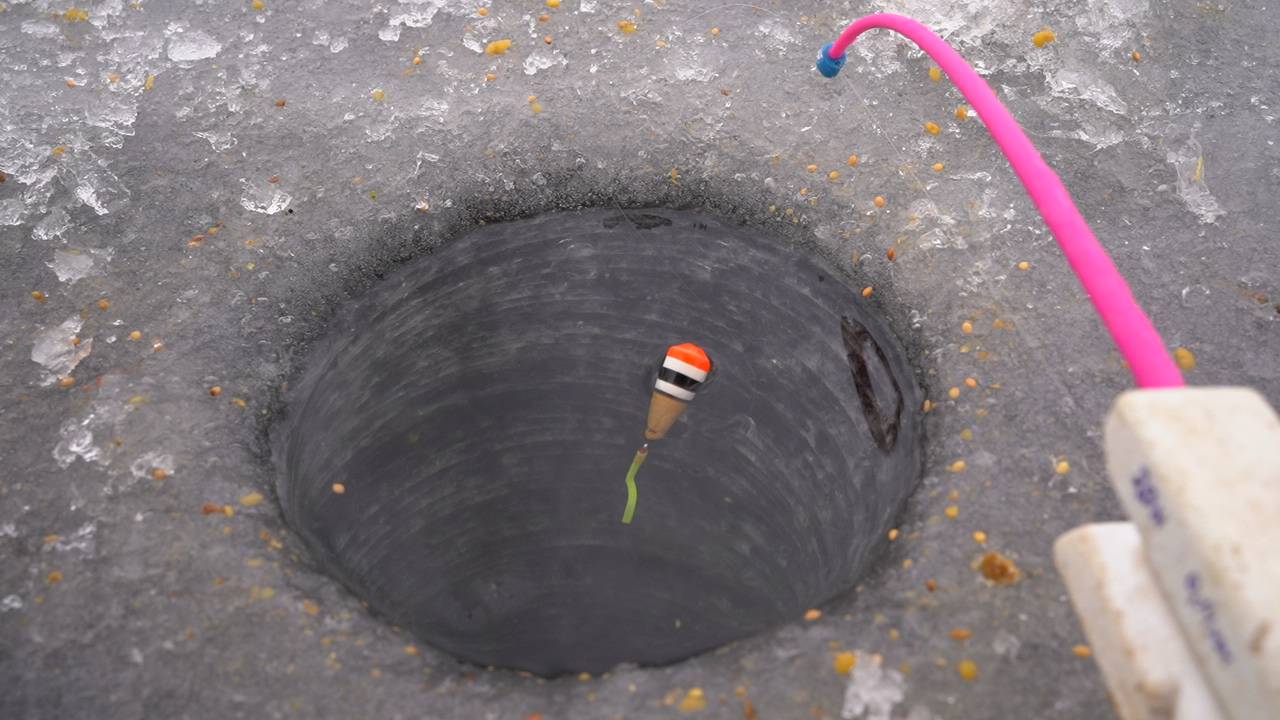 Закормил сверху лунку и поплавок сразу всплыл. Зимняя рыбалка