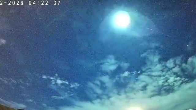 Очень яркий, продолжительный метеор-болид над Южным островом Новой Зеландии, утро 11 февраля, 4:22. Фотография сделана Линдой Май, наблюдавшей за ним строго на юг из Марлборо. Съемка производилась с помощью прибора Tapo C325WB v 1 #метеор #болид #НоваяЗеландия #астрономия #фотография #утро #Марлборо