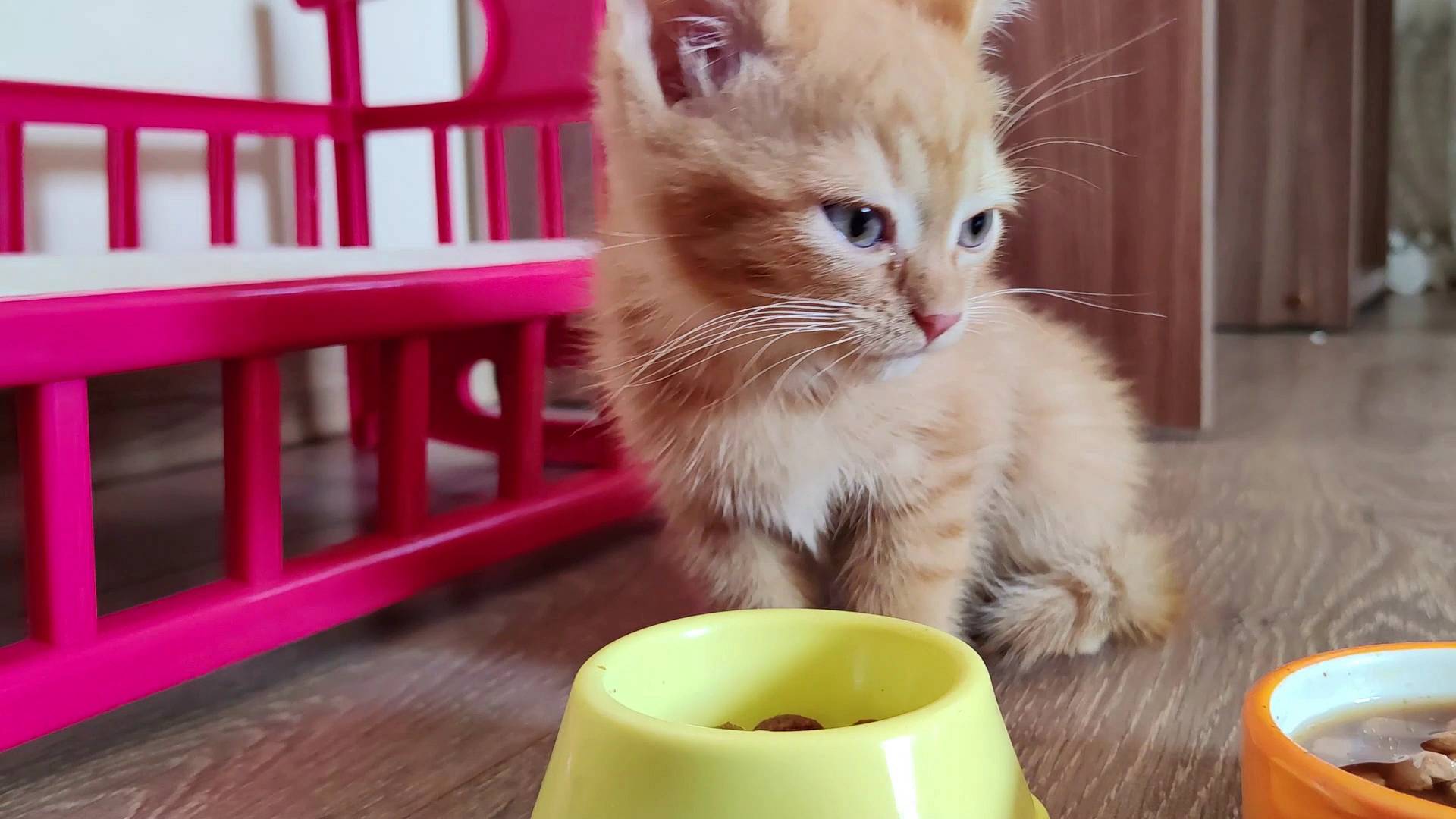 Котенок любит сухой корм.