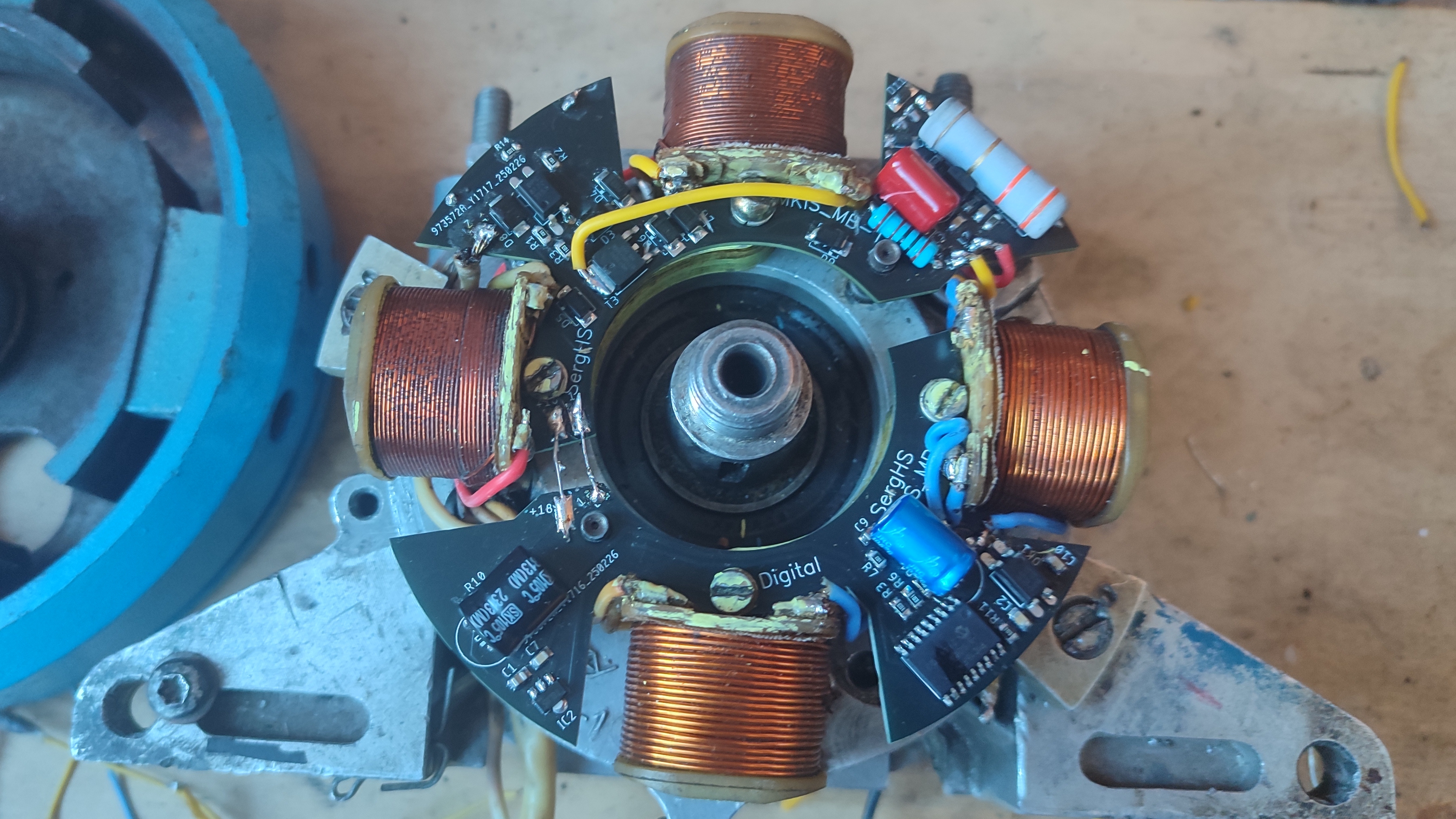 Представляю всем первый рабочий образец Микропроцессорного зажигания для моторов Вихрь и Нептун с контактными зажиганиями мн-1/мв-1ддя установки в подмаховичном пространстве. больше никаких лишних проводов и внешних блоков. И как всегда неподвижное основание.