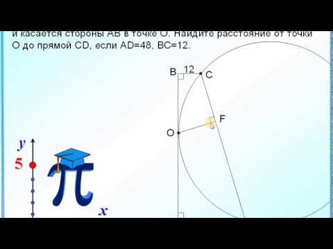 В прямоугольной трапеции АВСD с основаниями АD и BC угол А прямой. Окружность проходит через точки С и D и касается стороны АВ в точке О. Найдите расстояние от точки О до прямой CD, если АD=48, ВС=12.