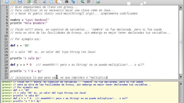 Uso de variables en groovy, declaracion de estas, etc :) Aqui el codigo fuente usado en el video http://dl.dropbox.com/u/2770316/groovy/Variables.groovy