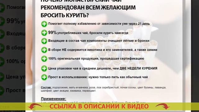 Как бросить курить и не набрать вес женщине 👉👉👉 https://kahgo.top/qxdZKQq 🔴 НОВИНКА! Монастырский чай от курения! Бросить курить легко! 👉👉👉 https://kahgo.top/qxdZKQq Успей заказать со СКИДКОЙ по ПРОМО-ЦЕНЕ 👉👉👉 https://kahgo.top/qxdZKQq Монастырский чай – естественное средство, помогающее всего-навсего за три недели всецело освободиться от никотиновой зависимости - Без никотиновых пластырей - Без никотиновых жвачек - Без лекарств и БАДов - Без книжек и кодирования Как Монастырский чай помогает бросать курить? Статистика утверждает, всего 3-4% пациентов, желающих бросить курить, в конечном итоге избавляются от привязанности. Курение — это одна из мощных зависимостей в мире, сопоставимая с зависимостью от наркотиков. Устройство организма человека такое, что только немногие имеют возможность бросить курить. Человеческий разум не узнаёт курение как губительную привычку и настоятельно просит новую и новую дозу никотина. Стопроцентное большинство бросающих курить своими силами встречаются с множеством особых проблем: - Набирают излишний вес по завершении бросания - Переживают нервность, долгое желание бросить курить - Испытывают страдания от хандры, назойливых мыслей и паники - 90% бросивших курить принимаются снова. Для решения проблем с этими трудностями был собран узкоспециальный состав Монастырского чая, определенный сознательно для курильщиков. Как действует Монастырский чай? Монастырский чай — это феноменальное средство, помогающее управиться с причиной стремления курить. По какой причине? - Чай выводит из организма 99,99% никотина в течение 3х недель. Привычка отходит на чисто физическом уровне, организм человека быстро забывает о никотине. - Чай выводит из организма токсины, улучшая состояние здоровья. Вы больше не пожелаете возвращаться к одышке, малоприятному аромату изо рта, вялости. - Чай укрепляет и успокаивает нервную систему. Вы позабудете о стрессе, невольном стремлении выкурить сигаретку и непрерывной нервозности. - Чай унимает лишний голод. Вы не будете иметь желание съесть лишнего, потому, что Ваш организм будет в тихом и расслабленном состоянии. Какие конкретно модификации случаться в Вашем организме спустя три недели? - Вы целиком и полностью очистите Ваш организм от смол, шлаков и никотина, сосредоточившихся во внутренних органах и костном мозге. - Ваши лёгкие смогут преобразовывать на 80% больше кислорода, по этому возрастет дееспособность. - Вы на сто процентов отделаетесь от нервозности, стабильного хотения курнуть и отвлечься. - Вы будете выглядеть не в пример лучше, появится желание активности и физических нагрузок. Вы будете чувствовать себя на 5-10 лет младше. - Вы освободитесь от хотения поесть что-либо или выпить. 90% курильщиков прекращают выпивать сразу по завершении освобождения от ?