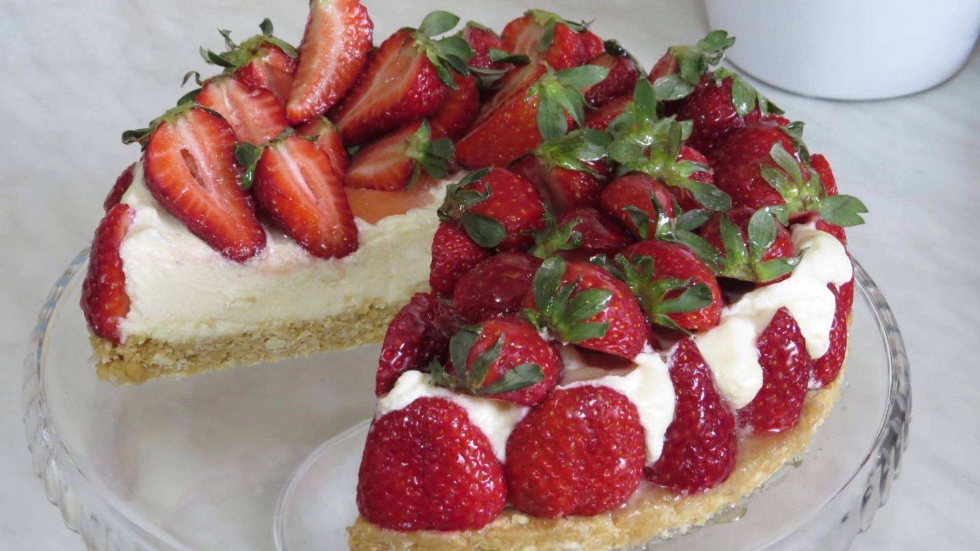 ШИКАРНЫЙ КЛУБНИЧНЫЙ ПЛОМБИР! ТОРТ БЕЗ ДУХОВКИ! ВКУСНО ТАК ЧТО ПАЛЬЧИКИ ОБЛИЖЕШЬ!!! Вкуснейший Крем Пломбир. Клубника с кремом пломбир это очень Вкусно! Простой рецепт торта Без Выпекания в Духовке! Крем Пломбир: Яйца - 2 шт Сахар - 150 гр Молоко - 400 мл Крахмал - 2 столовые ложки Ванилин - 0,3 чайной Масло сливочное - 180 гр Агар-Агар - 10 гр. (Или Желатин - 10 гр) Клубника - 700 гр. Печенье любое - 250 гр Масло сливочное - 50 гр. Нейтральная Глазурь: Сахар - 50 гр Вода - 50 гр Пектин - 1 чайная ложка Сахар - 2 столовые ложки. Cream Sundae: Eggs-2 PCs Sugar-150 g Milk-400 ml Starch - 2 tablespoons Vanillin-0.3 teaspoons Butter-180 g Agar-Agar - 10 gr. (Or Gelatin-10 g) Strawberries-700 gr. Cookies any-250 gr Butter-50 gr. Neutral Glaze: Sugar-50 g Water-50 g Pectin-1 teaspoon Sugar - 2 tablespoons.