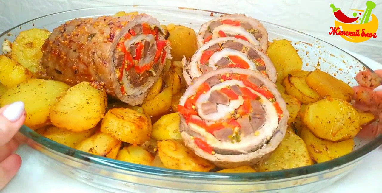 Свинина 1 кг Язык отварной 2 шт. Можно изменить начинку на жареные грибы с луком Перец маринованный Или запечённый Соль, перец по вкусу Соус: Майонез 2 ст. Л. Горчица зерновая 2 ч. Л. Соус карри из слив 2 ч. Л. Гарнир: Картофель 1 кг Лук 1 шт. Чеснок 2'зубчика Соль, перец, паприка по вкусу Масло раст. 2 ст. Л Приправа для картофеля 1 ст. Л Подпишитесь на канал! И поставьте лайк ?, мне будет приятно ?