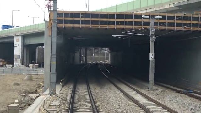 Поездка Европа Вена вид из окна кабины машиниста поезда железная дорога в Евросоюзе
