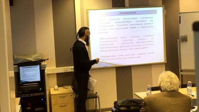 Защита выпускной квалификационной работы магистра Смирнова Александра в СпбГУТ имени профессора Михаила Александровича Бонч-Бруевича 2017. Вот и закончился очередной этап жизни. Защита прошла более менее спокойно, но я забыл всю речь когда вышел) В работе еще много нерешенных задач, которые я собираюсь решать в аспирантуре. В идеале, хочу сделать конечное устройство, выделяющее объекты и поставить на борт топового беспилотника. Тема диплома - выделение прямолинейных сегментов объектов на цифровых изображениях.
