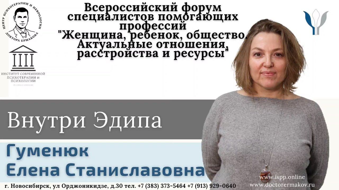 Гуменюк Елена Станиславовна, психолог - психоаналитик, врач-невролог, детский невролог Центра психотерапии и неврологии Доктора Ермакова. Новосибирск, Россия. В докладе затрагиваются нюансы теории Франсуазы Дольто, касающиеся особенностей эдипализации девочки, проиллюстрированные тремя короткими клиническими виньетками и несколькими рисунками. Всероссийский форум специалистов помогающих профессий "Женщина, ребенок, общество. Актуальные отношения, расстройства и ресурсы" Канал ИСПП в телеграмм: https://t.me/isppnsk Группа ИСПП в Вконтакте: https://vk.com/modernpsychoterapy Центр Психотерапии и Неврологии доктора Ермакова: Телеграмм: https://t.me/doctorermakov Вконтакте: https://vk.com/doctorermakov