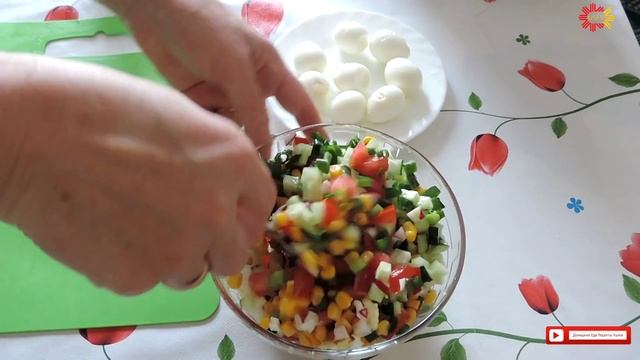 ОВОЩНОЙ салат с ПЕРЕПЕЛИНЫМИ яйцами и КУКУРУЗОЙ.Домашняя еда Кухня Рецепты