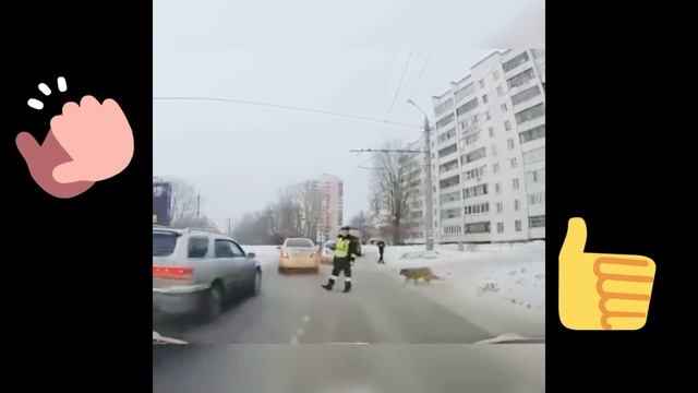 Инспектор ДПС остановил движение и перевёл через дорогу хромую собаку? #дпс #инпектордпс #помощьнадороге #юмор #прикол