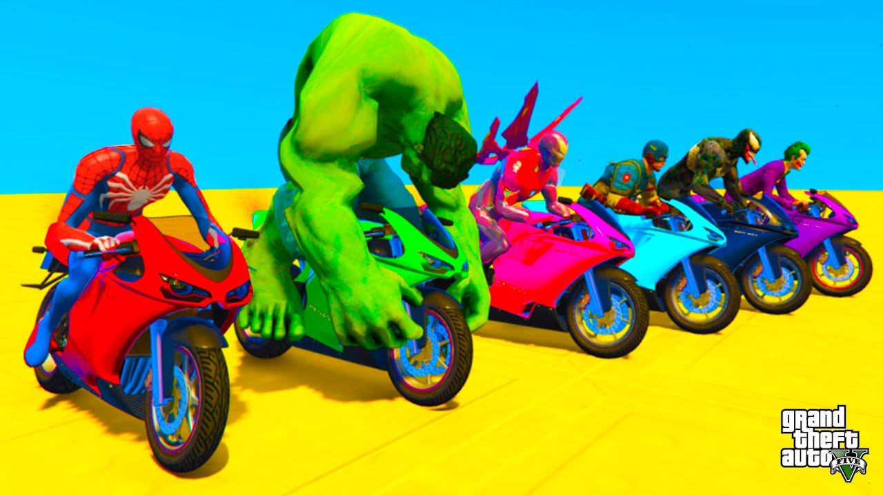 Homem-Aranha Parkour com Limusines Tratores Motos Ônibus Carros na pista de obstáculos - Gta GTA 5 Gta 5 com Mods Stream: Desafio Homem Aranha com Super-heróis na Parkour com Limusines Tratores Motos Ônibus Carros Trucks Helicópteros na pista de obstáculos! Full collection of Spider-man Man Adventures & his hero friends If you liked it, leave the Like and subscribe Thank you #Stream #Motos #Carros