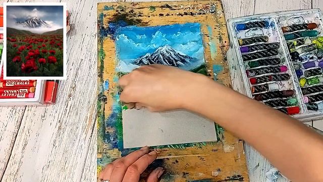 Маки в горах. Весенний пейзаж. Рисуем масляной пастелью. Бесплатный урок. Марафон Расцветай.