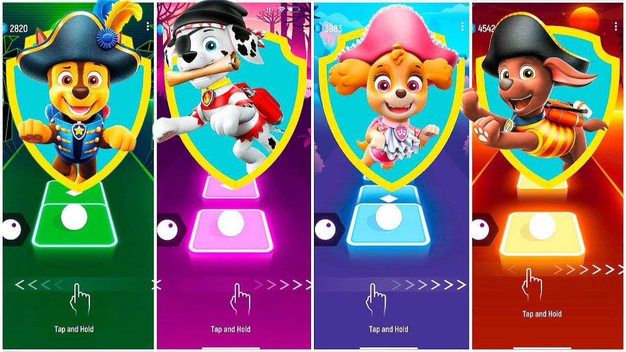 Мультики для Детей Щенячий Патруль Tiles Hop - ГОНЩИК, МАРШАЛЛ, СКАЙ, ЗУМА