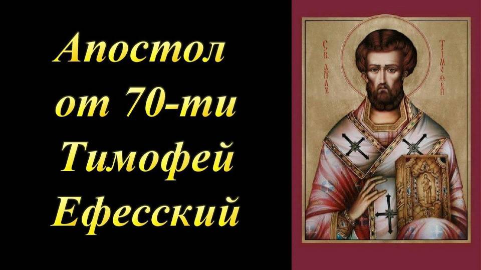 Тимофей — апостол от семидесяти, любимый ученик апостола Павла, первый епископ Эфесский. К Тимофею обращены два пастырских послания апостола Павла (1-е послание к Тимофею, 2-е послание к Тимофею), вошедшие в состав Нового Завета. Апостол Тимофей Ефесский.Также Тимофей упомянут в первых стихах 2-го послания к Коринфянам, Послания к Филиппийцам, Послания к Колоссянам, 1-го послания к Фессалоникийцам и 2-го послания к Фессалоникийцам и Послания к Филимону.