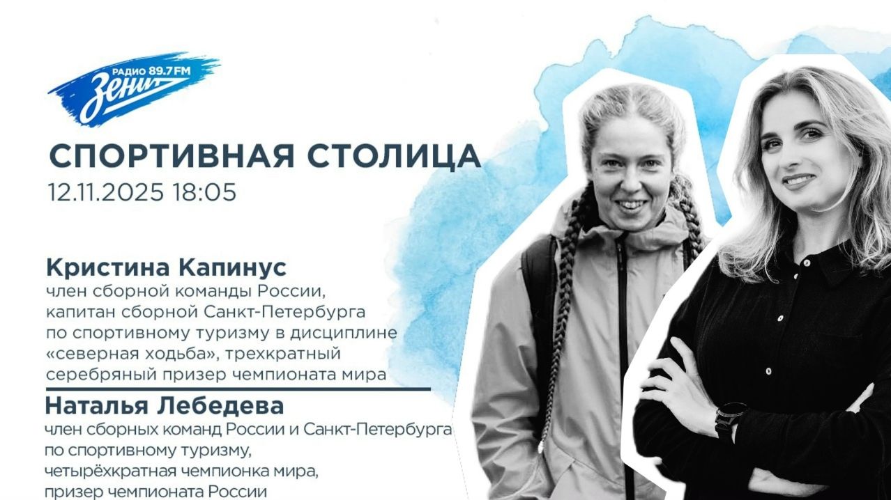 «Спортивная столица»: в гостях Кристина Капинус, член сборной команды России, капитан сборной Санкт-Петербурга по спортивному туризму в дисциплине «северная ходьба», трехкратный серебряный призер чемпионата мира и Наталья Лебедева, член сборных команд России и Санкт-Петербурга по спортивному туризму, четырёхкратная чемпионка мира, призер чемпионата России