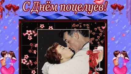 Поздравление с днём поцелуя. 6 июля. #сднемпоцелуя #деньпоцелуя #6июляденьпоцелуя #6июляпраздник #позравлениясднемпоцелуя #сднемпоцелуяпоздравление #сднемпоцелуяоткрытка #видеос #видеооткрыткас #музыкальнаяоткрыткас #поздравление #поцелуй #уста #музыкальнаяоткрыткасднемпоцелуя С Днём Поцелуя! 6 Июля День Поцелуя! Красивая Открытка Песня С Днём Поцелуя! Целуйтесь На Здоровье! ******************************************** Ну, целуй меня, целуй, Хоть до крови, хоть до боли. Не в ладу с холодной волей Кипяток сердечных струй. Сергей Есенин Пожалуй самым необычным праздником, который придумало отмечать человечество, является День поцелуев. Как появился обычай целоваться? По одной из легенд во время поцелуя происходит соединение душ целующихся, именно по этому на бракосочетании обряд завершают поцелуем. По другой версии люди прибегают к поцелуям, чтобы узнать друг друга на «дух», проверить, подходят ли они друг другу. Обычай отмечать День поцелуев придумали в Великобритании, а потом ООН учредила его как международный праздник с датой празднования 6 июля каждого года. Россия присоединилась к празднованию дня поцелуев сравнительно недавно. Отмечается этот день проведением веселых конкурсов, установлением новых рекордов в длительности поцелуев. Почему люди целуются? Во-первых, потому что это привито культурой. Люди видят актеров, целующихся на экранах телевизоров, в кино и в рекламе, им рассказывают о том, что их друзья целуются с тем-то и тем-то, они видят людей, целующихся на улице. В результате, в известных ситуациях поцелуй воспринимается как обязательная их составляющая. Поэтому в романтической ситуации в силу вступает подсознательный стереотип, и люди чувствуют практически непреодолимое желание поцеловаться независимо от того, хотят они этого в действительности или нет. Существует даже специальная наука, изучающая фундаментальные особенности человеческого поцелуя, — филематология. Ученые уже неоднократно проводили исследования в рамках филематологии. Было установлено, что поцелуй успокаивает нервную систему и предотвращает стрессы, помогает похудеть, является отличной профилактикой морщин: он задействует около 30 мышц лица. Кроме того, поцелуй разрабатывает легкие, вызывает активизацию деятельности целого ряда гормонов. Психологи из Берлинского университета установили, что три 20-секундных поцелуя с утра способны поддерживать романтическое настроение целый день, а долгий поцелуй прекращает приступ вегетососудистой дистонии. Кстати, по мнению тех же ученых, длительность идеального поцелуя — 3 минуты.
