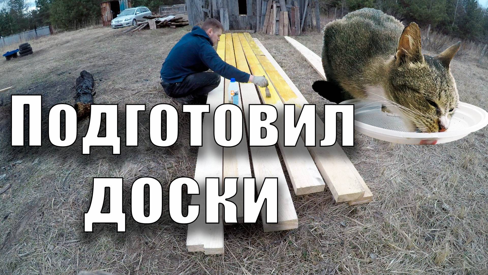 Бытовку планирую установить на деревянный ростверк из срощщеной доски 150х50, которая заменит брус 150х150. Начал обрабатывать древесину биозащитой. Перенёс электрический столб на другое место, чтобы он не мешал собирать ростверк. Прикармливаю диких кошек. Телеграм канал: https://t.me/koss365_online