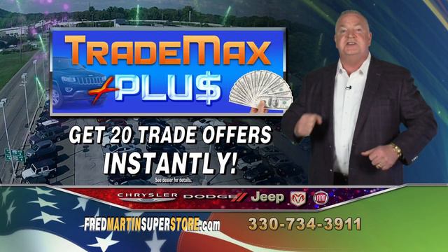Visit us on the web: https://www.fredmartinsuperstore.com FACEBOOK: http://www.facebook.com/fredmartinsup... TWITTER:@FMSuperstore INSTAGRAM: FredMartinSuperstore PINTEREST: http://pinterest.com/fmsuperstore/ Fred Martin Superstore, 3195 Barber Road Barberton-Norton, OH 44203, 330-753-4444 https://www.fredmartinsuperstore.com Chrysler, Dodge, Jeep, Ram, Fiat, New Cars, Used Cars Open 7 days a week. Serving: Akron, Barberton, Norton, Copley, Fairlawn, Green, Stow, Canton, Massillon, Tallmadge, Kent, Stow, Cuyahoga Falls, Ravenna, Wadsworth, Wooster, Uniontown, Doylestown, Brunswick, Medina. Ohio's Number One Used Car Dealer FCA "Customer First Award For Excellence" Winner Over 1500 vehicles available. Check out the Fred Martin "Platinum Advantages" for every vehicle with a selling price over $10,000. Check dealer for details. We service all makes and models and have OEM and after-market parts and accessories available for sale.