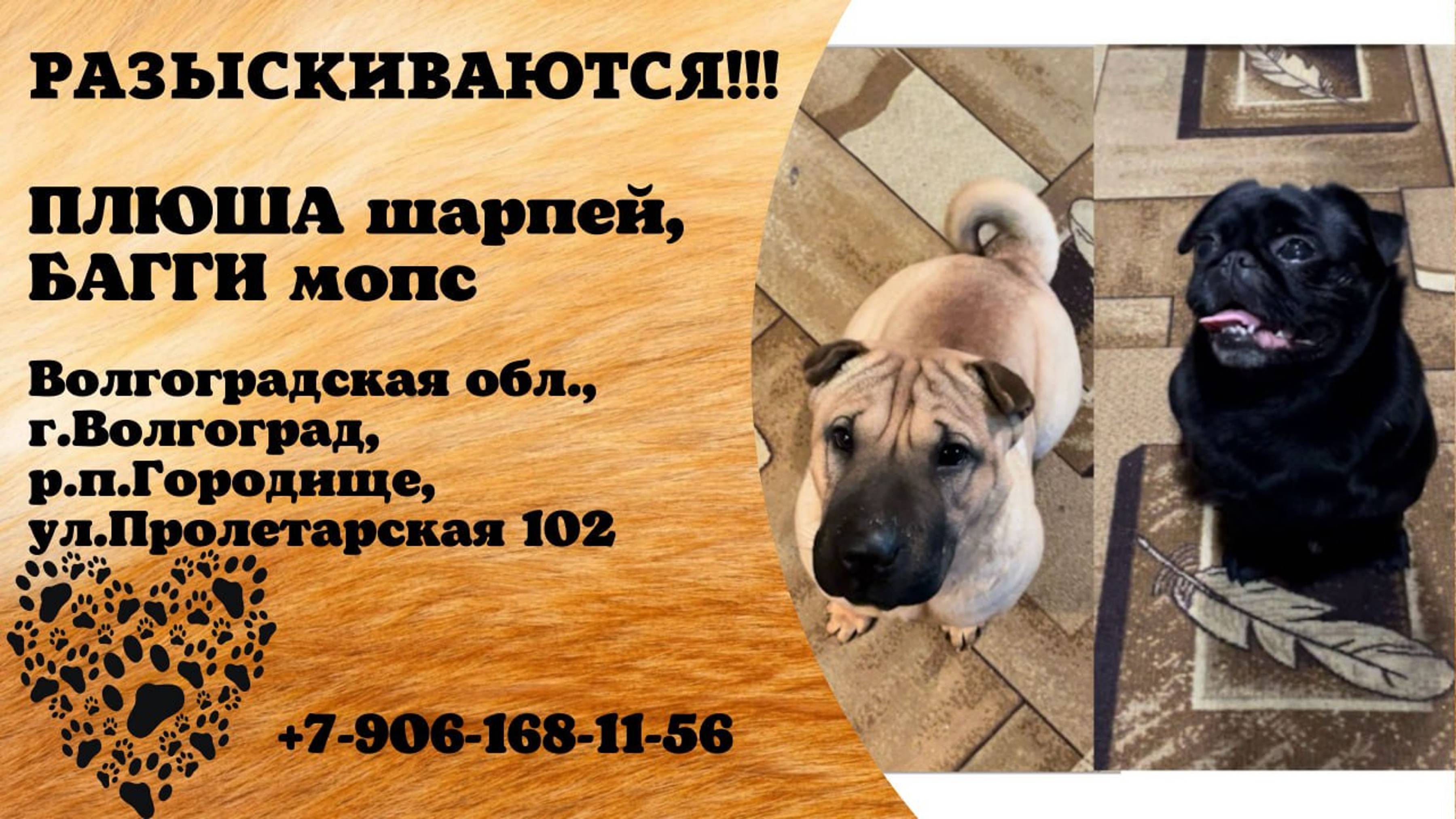 Пропали собаки! ПЛЮША. Шарпей. БАГГИ. Мопс. Волгоградская обл, г.Волгоград