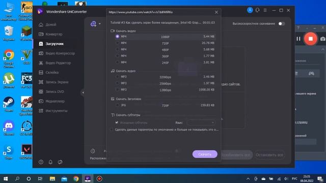 Поздравляю, если вы посмотрели это видел, то вы научились всего за минуту скачивать видео с ютуба. Видео можно скачать не только с ютуб, но и с других сайтов) Ссылка на UniConventer13 офицальная - https://uniconverter.wondershare.com.ru/ Ссылка на кряк( от сюда я скачивал) - https://1progs.ru/wondershare-uniconv... Вторая ссылка: https://kilosofta.com/wondershare-video-converter.html Стим: https://steamcommunity.com/profiles/76561199196135283/ Всем пока :3
