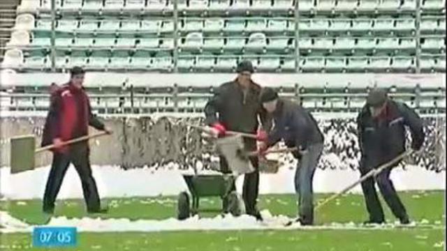 Последняя тренировка перед важной игрой 17.11.2009, 10:23 По материалам программы Сегодня Потренировавшись зимой, улетели в осень, если не в лето. На стадионе имени Стрельцова, где сборная России провела заключительное занятие перед отъездом в Словению, даже не успели сгрести весь снег с поля. А в Мариборе в среду, в день игры, ожидается плюс 17. Несмотря на мороз в настоящем и не лучший результат в прошлом, будущее рисовалось нашим игрокам радостным, передает НТВ. Тренировка прош...