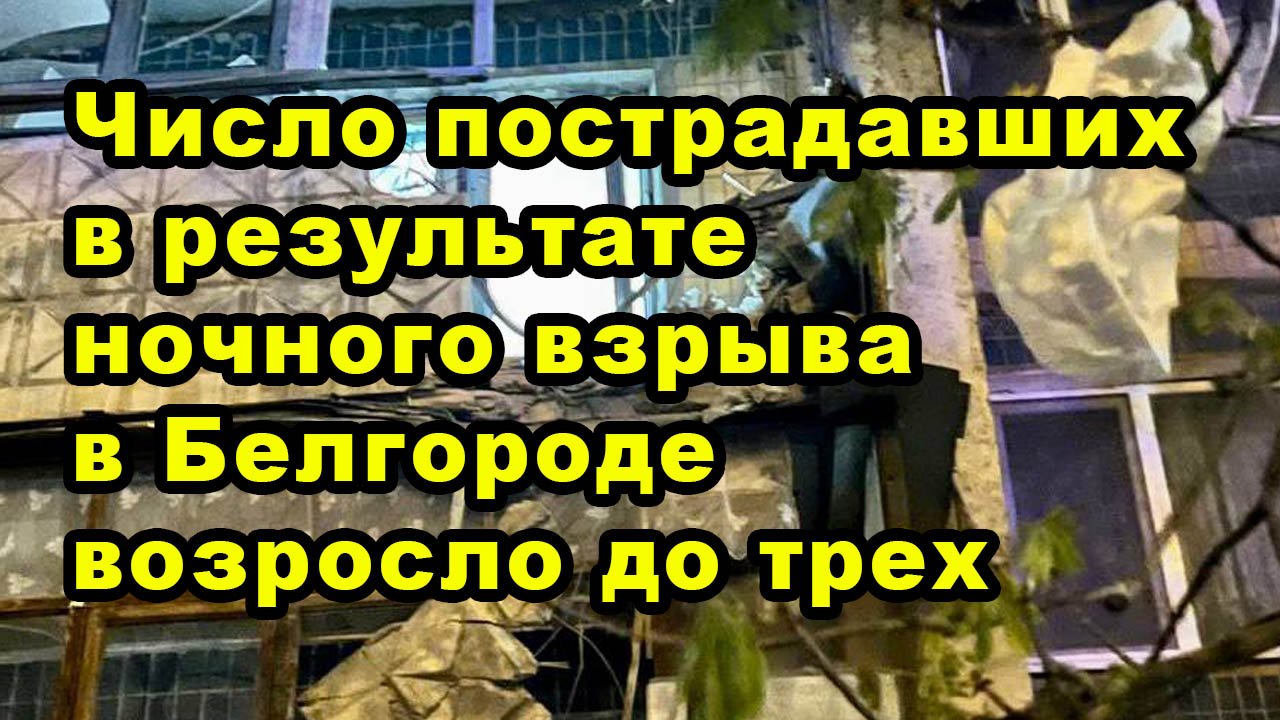 Число пострадавших в результате ночного взрыва в Белгороде возросло до трех, сообщил губернатор