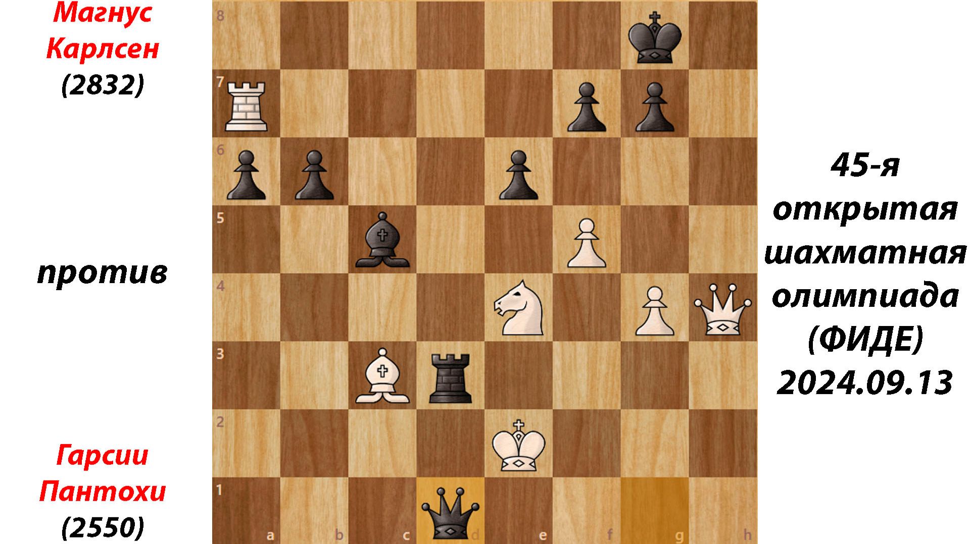 Магнус Карлсен против Гарсии Пантохи 45-я открытая шахматная олимпиада (ФИДЕ) 13.09.2024