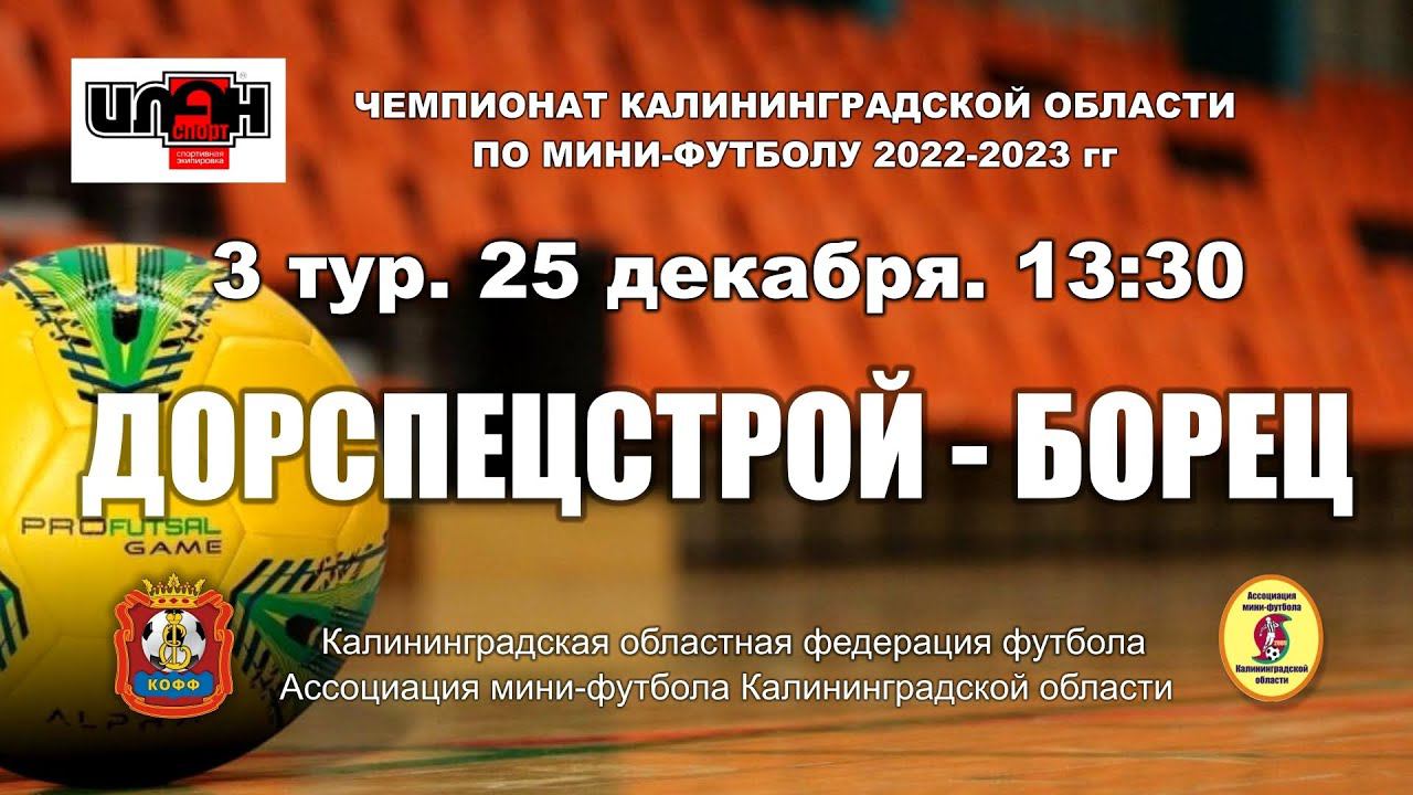 Мини-футбол. Чемпионат Калини нградской области. Суперлига. 3-й тур. Дорспецстрой- Борец