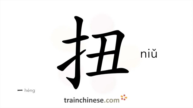 扭 (niǔ) to twist, turn round; sprain, wrench
