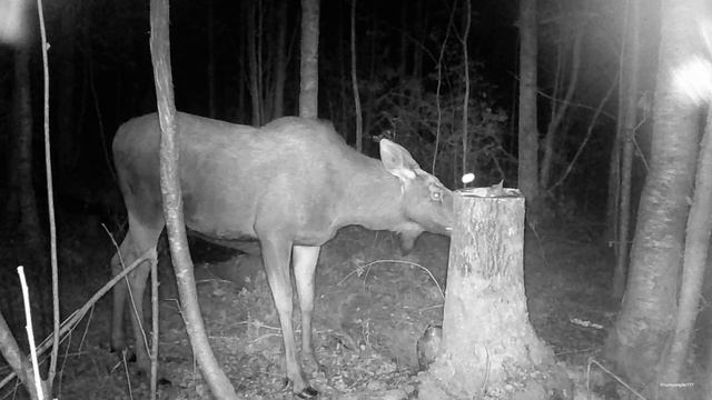Молодая лосиха лакомится солью. Ленинградская область.