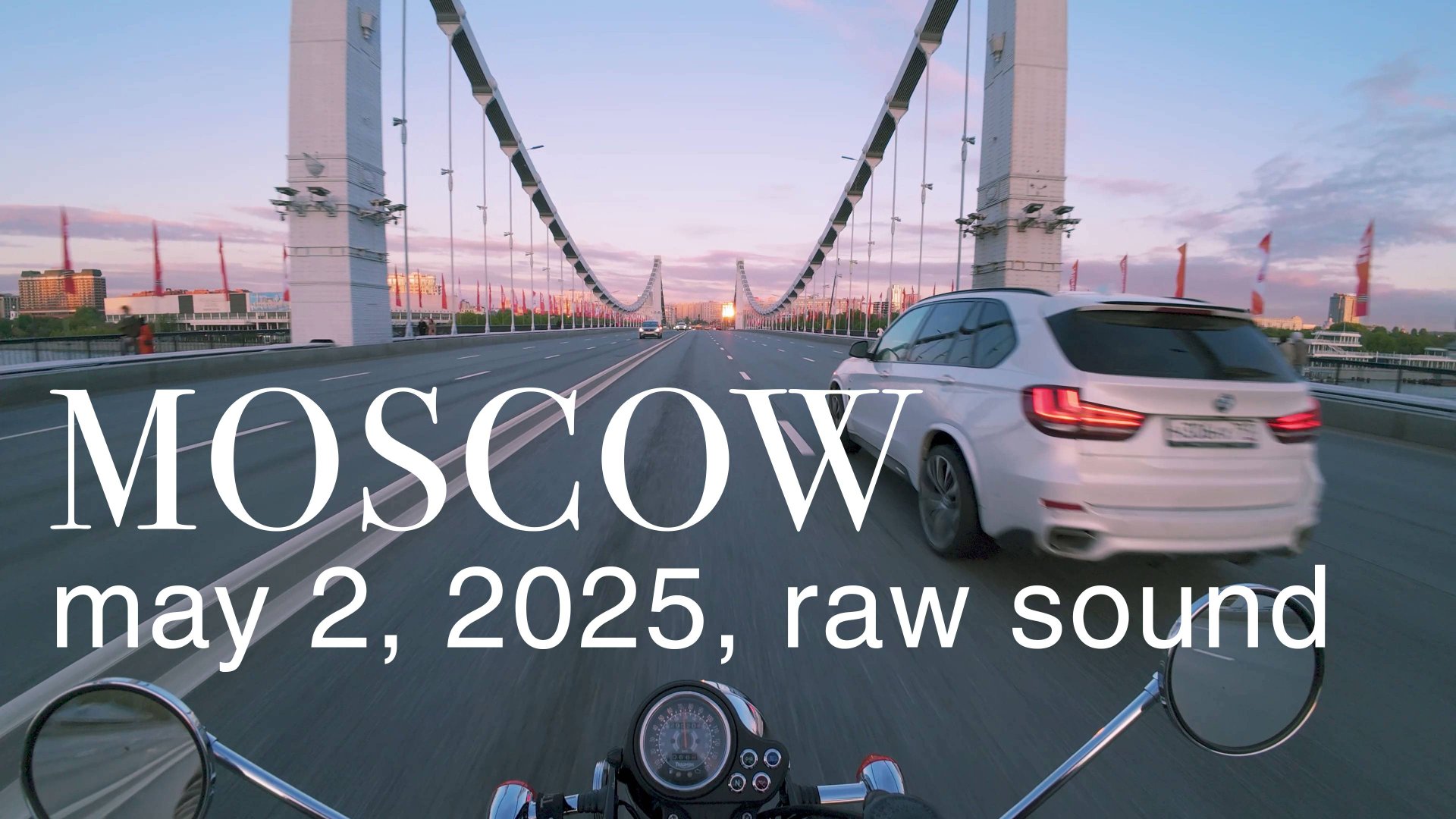 Поездка по непривычно пустой вечерней Москве от кафе Пипес до Нагатинской набережной. 2 мая 2025 года