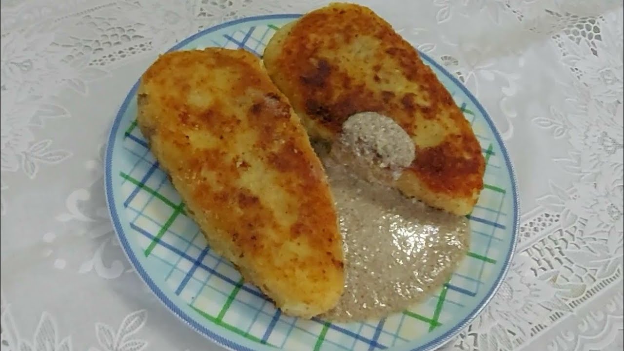 Картофельные зразы с мясом и грибным соусом