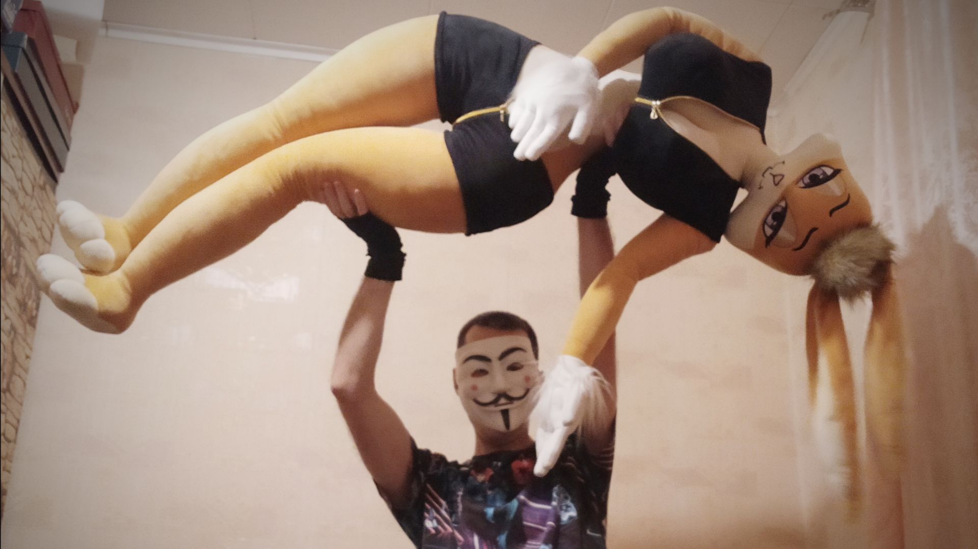 Плюшевая кукла, акробатические трюки с куклой, приколы