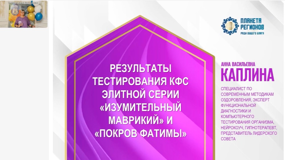 🙍♂🙍♀САМЫЕ СВЕЖИЕ НОВОСТИ, ОТЗЫВЫ И МЕТОДИКИ ПРИМЕНЕНИЯ КФС В НАШЕЙ ГРУППЕ ТЕЛЕГРАМ - https://t.me/planetaregionovkfs 👍Приобрести продукцию Компании: https://кфс-кольцова.рф 👍Каждому новому клиенту кожаный чехол и клубная карта в подарок!! КАПЛИНА АННА ВАСИЛЬЕВНА Специалист по современным методикам оздоровления, эксперт функциональной диагностики и компьютерного тестирования организма, нейрокоуч, гипнотерапевт Вебинар «РЕЗУЛЬТАТЫ ТЕСТИРОВАНИЯ КФС ЭЛИТНОЙ СЕРИИ «ИЗУМИТЕЛЬНЫЙ МАВРИКИЙ» И «ПОКРОВ ФАТИМЫ» 9 сентября 2024 Ролик с канала Планета Регионов: https://rutube.ru/video/person/25272217/ 📩 Наш e-mail: centr-region.kfskolcova.rf@ya.ru ☎Телефон, Вайбер, Ватсап, Телеграмм: +7 (951)913-06-86 #планетарегионов#кфсизумительныймаврикий #кфспокровфатимы