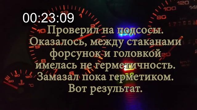 Зима пришла ОХХ стали плавать. Менял ДТОЖ аш два раза. Не помогало. Снял показания с них, они оказались идентичны. Надо голову включать. А не охота - страсть как. Проверил на подсосы. как проверить быстро и просто самому https://youtu.be/fZ0wdFDw4k8 И вот, подсосы по всем 4-м форсункам между стаканчиком и корпусом головки ГБЦ. Пока замазал герметиком. Результаты на лицо.