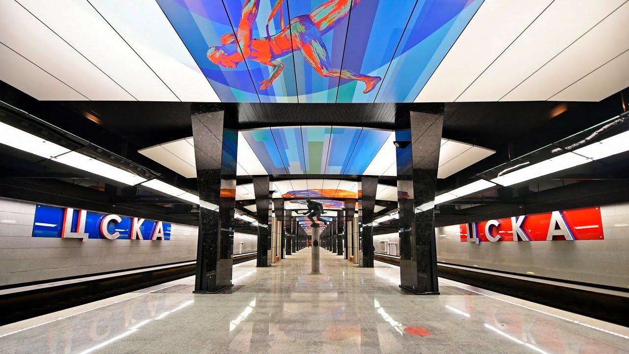Обзор станции метро ЦСКА Большой Кольцевой линии Московского Метрополитена. Расположена в Хорошёвском районе (САО), названа по близлежащим спортивным объектам Центрального спортивного клуба Армии. Открыта 26 февраля 2018 года в составе участка «Деловой центр» — «Петровский парк». Колонная трёхпролётная станция мелкого заложения с одной островной платформой. Оформление станции содержит отсылки к Центральному спортивному клубу Армии, именем которого она названа. Основными цветами на станции являются красный и синий. На потолок нанесены декоративные изображения, посвящённые различным видам спорта. Авторы плафона — московские художники-монументалисты Е.В. Бубнова и Е.Е. Щеглов. Панно выполнено в технике цифрового коллажа с элементами живописи, фотографии и компьютерной графики и напечатано на алюминиевых панелях с использованием технологии УФ-печати. #цска #бкл #московскийметрополитен