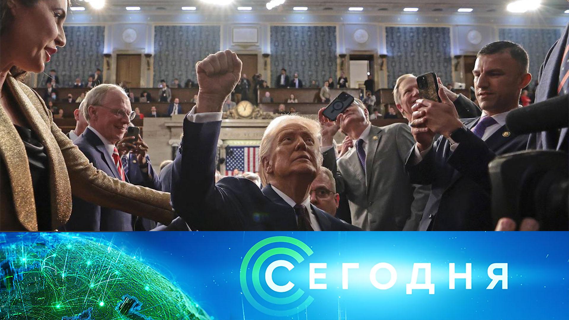 00:00 В этом выпуске 00:36 Сводка Минобороны: о ситуации в Курском приграничье. 01:00 А глаз как у орла: российским разведчикам в зоне СВО и приграничье активно помогают беспилотники. Как современная техника оберегает жизни военных? 03:53 Владимир Путин назначил Александра Дронова врио губернатора Новгородской области. 05:03 Дональд Трамп выступил с большой речью в Конгрессе. 10:12 Посещаемость российских кинотеатров за год упала на треть. 13:50 В Москве в преддверии 8 Марта пройдет награждение всероссийской премией «Женщина — приzvание». 18:51 Ледяная гора образовалась из-за коммунальной аварии в Ростовской области. Смотрите все выпуски программы «Сегодня» на RUTUBE: https://rutube.ru/plst/53542/