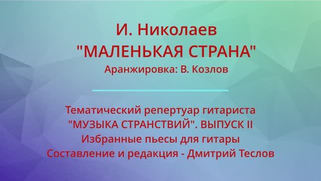 И. Николаев. "МАЛЕНЬКАЯ СТРАНА". Аранжировка: В. Козлов. Видео партитуры (гитара)