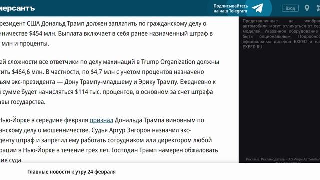 Суд увеличил сумму штрафа Трампу по делу о мошенничестве с $355 млн до $454 млн