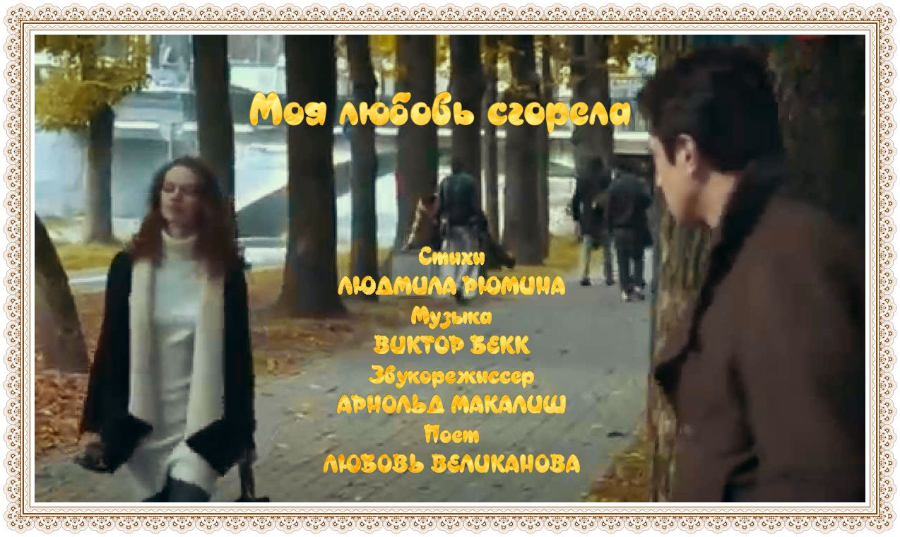 МОЯ ЛЮБОВЬ СГОРЕЛА.ст.М.Рюмина,муз.В.Бекк,вок.Л.Великанова,зв.А.Макалиш,мон.В.Зубкова