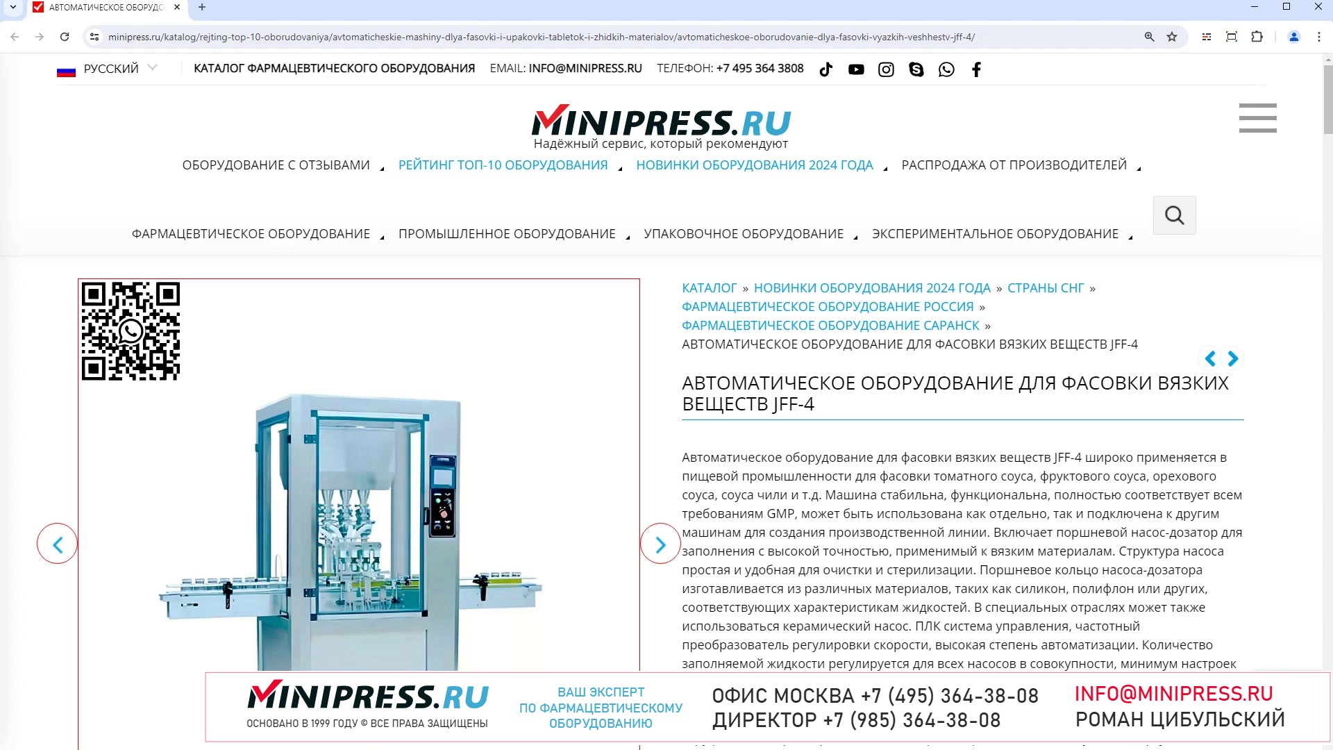 Minipress.ru Автоматическое оборудование для фасовки вязких веществ JFF-4